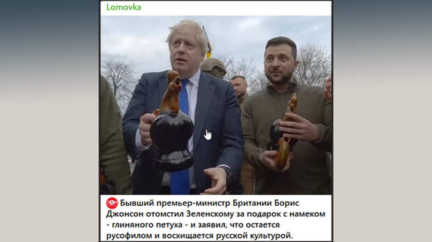 Борис Джонсон и петух. Скрин: ТГ-канал Lomovka