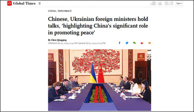 Своя версия мирного урегулирования есть у Поднебесной. Китайский министр иностранных дел Ван И провёл переговоры со своим украинским коллегой Дмитрием Кулебой, на которых тот заявил, что якобы Украина готова провести переговоры с Россией.